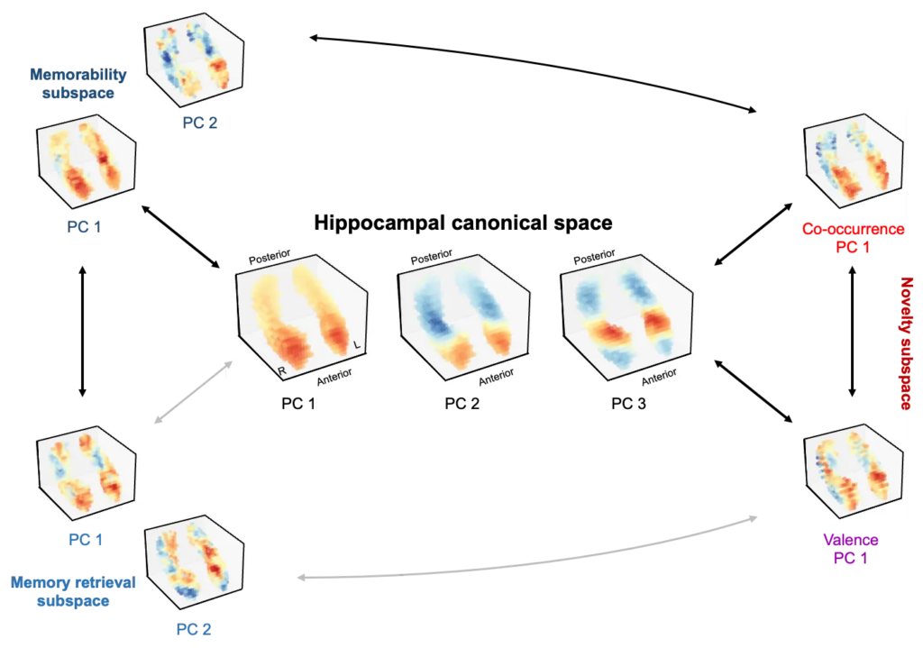 How does the hippocampus coordinate multiple processes for social memory encoding and retrieval? To investigate the hippocampus’s role as a coordinator, we apply dimensionality reduction methods to identify low-dimensional subspaces within hippocampal dynamics for each process and assess their alignment, demonstrating shared computation components across encoding and retrieval.